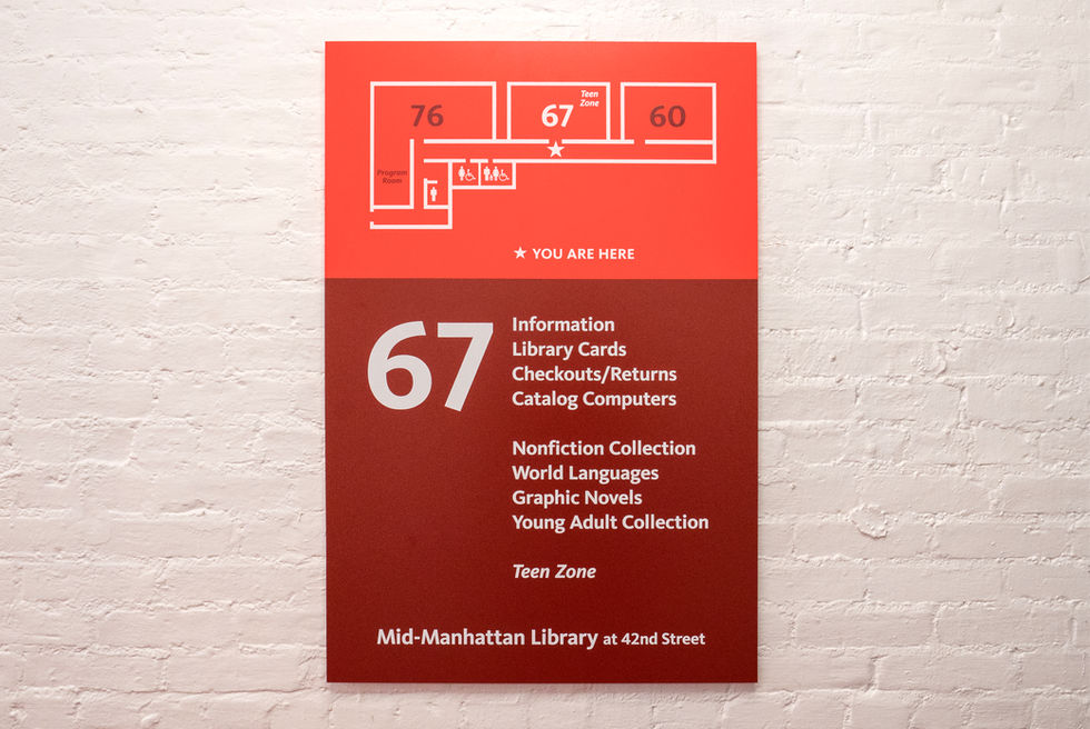 To improve and unify the visitor experience across the Library's 92 locations, NYPL's Creative Services and Capital Planning teams partnered with TPG Architecture to develop a comprehensive signage and wayfinding system that could be applied to branch libraries and research centers.